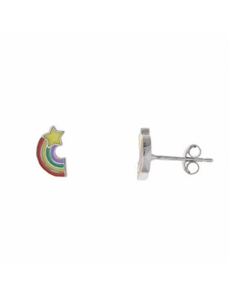 Pendientes con forma de arco iris y estrella en esmalte. Cierre a presion