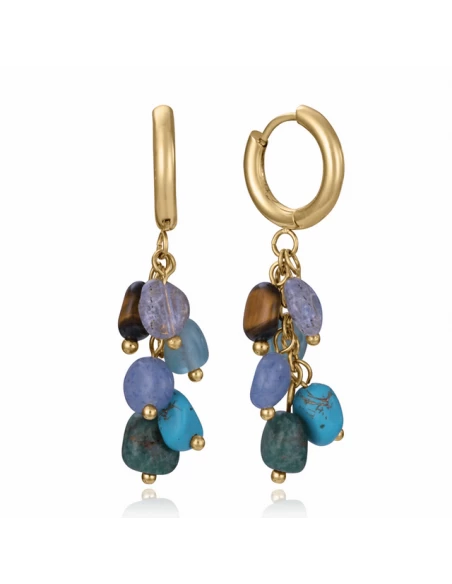 Pendientes criolla con racimo de piedras naturales en diferentes tonos. Cierre de criolla.