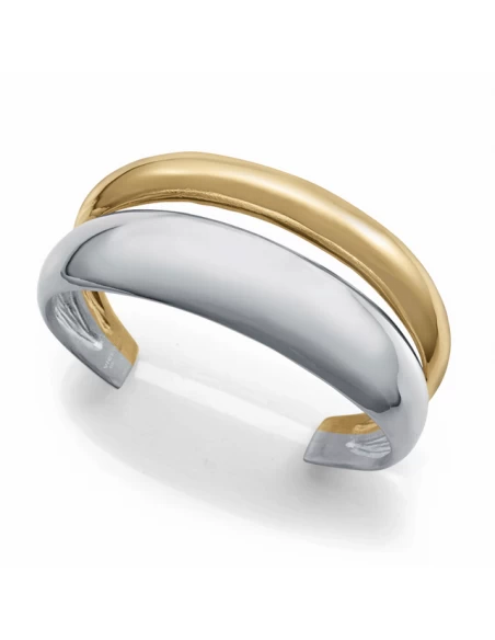 Brazalete doble parte dorada de 10 mm. y la de acero de 18 mm. de ancho en la parte superior, parte inferior abierta.