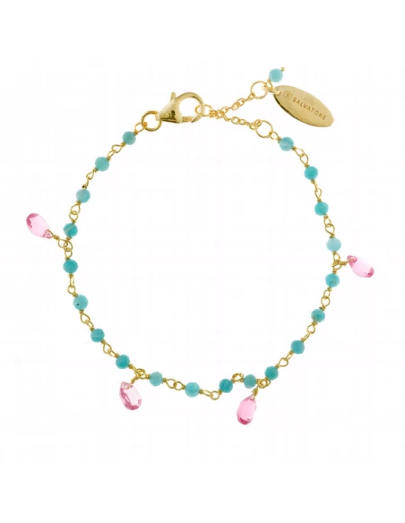 163P0112 * Pulsera Plata Salvatore Baño Oro Turquesas