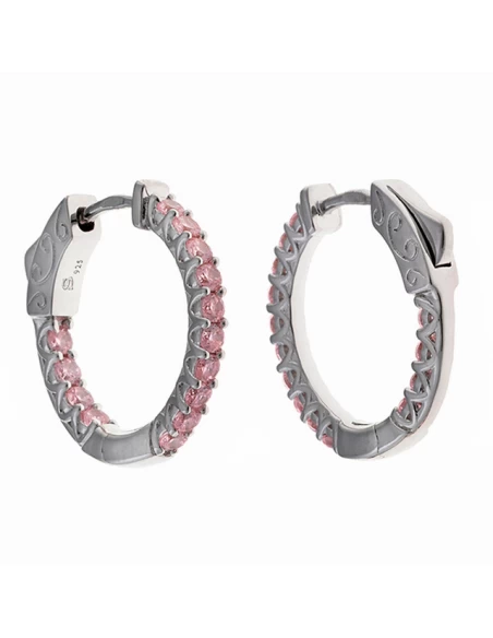 Pendientes Criolla de Plata de 925 mls. con baño de rodio. Circonitas Rosa con talla Brillante.