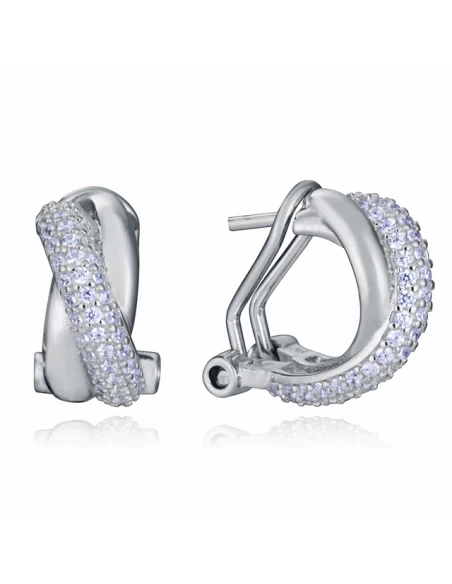 Pendientes en forma de X una mitad cuajada de circonitas. Cierre de omega.