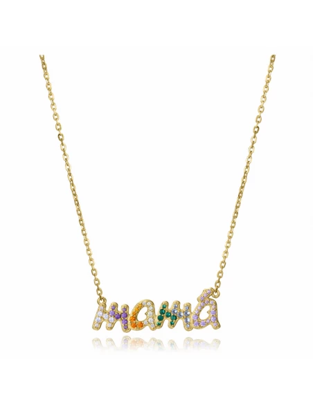 Cadena forsait de 40+3 cm. de largo con colgante «mama» en piedras de colores. Cierre de mosqueton.
