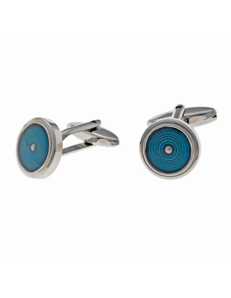 270HA003 – Gemelos Salvatore De Acero Redondos Con Centro De Resina Esmalte Azul.