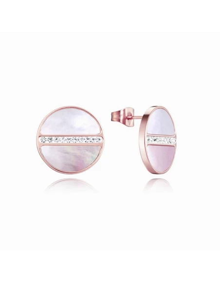 Pendientes redondos con madre perla rosa y tira circonitas.