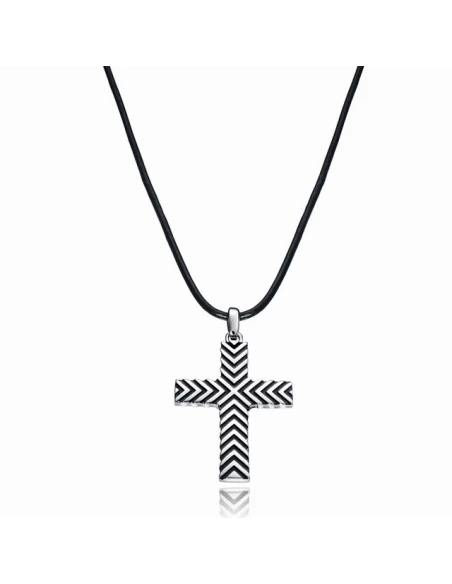 Cordon negro de 50 cm + 3 cm de alargador con cierre de mosqueton con colgante cruz.
