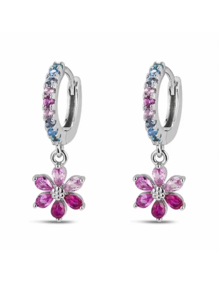 9120804 Pendientes Plata Rodiada Lucia Martín. Aro Con Flor Rosa