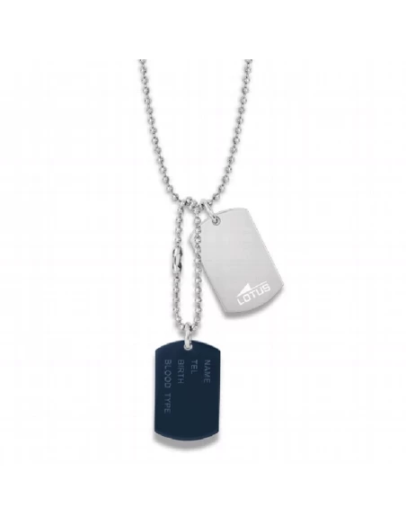 Cadena de bolas de 55 cm. de largo con 2 chapas una de ellas IP Azul, tipo militar. Se puede grabar.