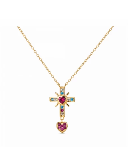Cadena forsait de 38 cm. mas 5 cm. de alargador con cruz multicolor de 18 mm. y corazón colgante. Cierre de mosqueton.