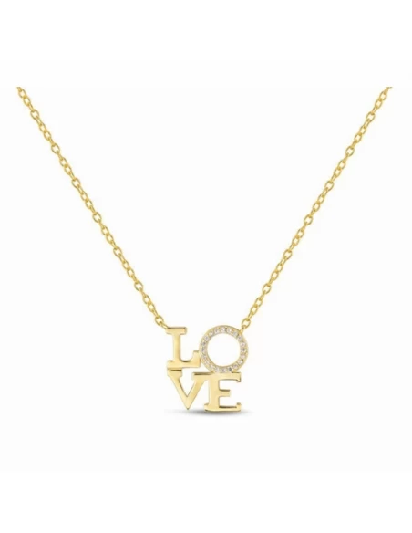 Cadena forsait de 38 cm. + 5 cm. de alargador con colgante LOVE, la O con circonitas. Cierre de mosqueton.