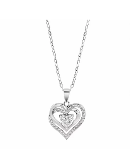 Cadena forsait de 42 cm con colgante de dos corazones entrelazados con circonitas. Cierre mosquetón.