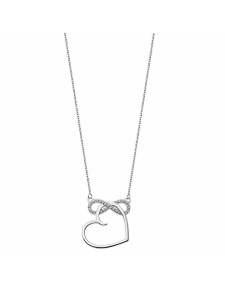 Cadena de 42 cm de largo con cierre mosqueton y colgante corazon con infinito circonitas entrelazado.