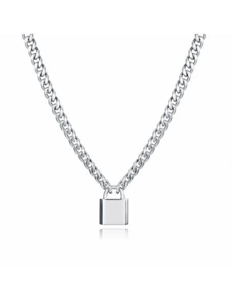 Colgante de Cadena Barbada y colgante en forma de candado en acero en su color.