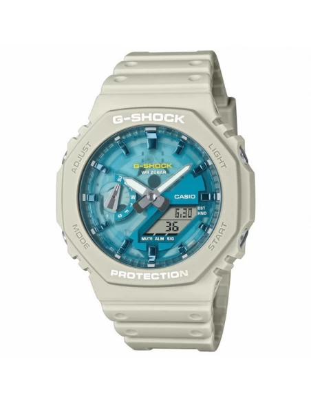 Analógica: 2 manecillas (hora y minutos [la manecilla se mueve cada 20 segundos]), 1 dial (día)