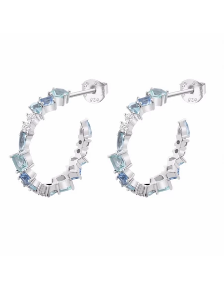 Pendientes aro con piedras en tonos azules con distintas tallas. Cierre a presion.