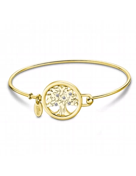 Pulsera tipo brazalete de cable con arbol de la vida con cristales. Cierre de gancho.
