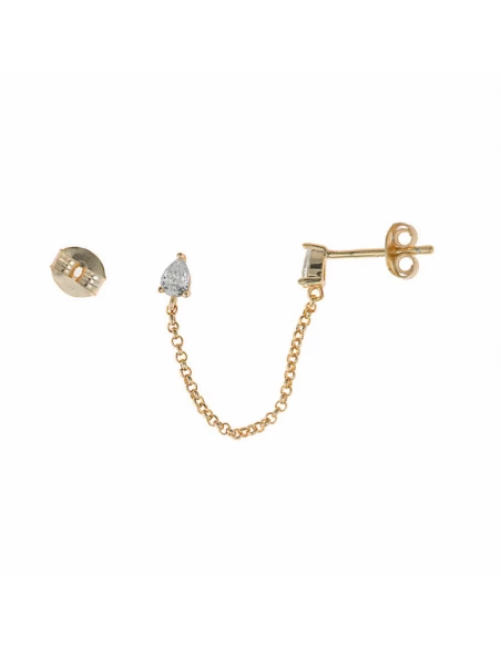 Pendiente con 2 circonitas en forma de lagrima unido por cadena. Cierre de presion.