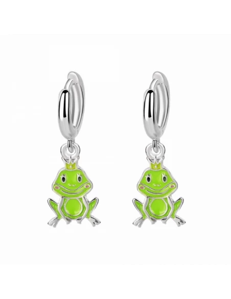 Pendientes De Niña.Plata. Criolla De 10 Mm ø, Con Rana Esmaltada Collgante