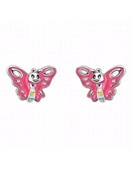 Pendientes De Niña. Plata. Mariposa Esmaltada. Presión.6 Mm.