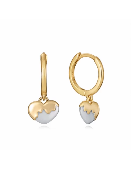 Pendientes de aro con colgante en forma de corazon con corazones bicolor.