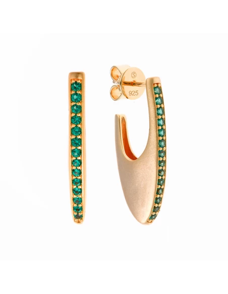 Pendientes en forma de ovalo de 28 mm. de largo satinado con circonitas verdes en el frente.