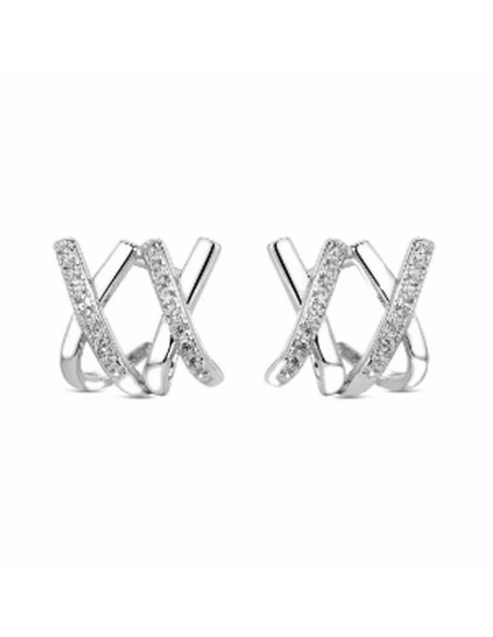 Pendientes de Plata de Ley. Dos Hilos con Circonitas y Dos Hilos Lisos en «X». Cierre de Presión.