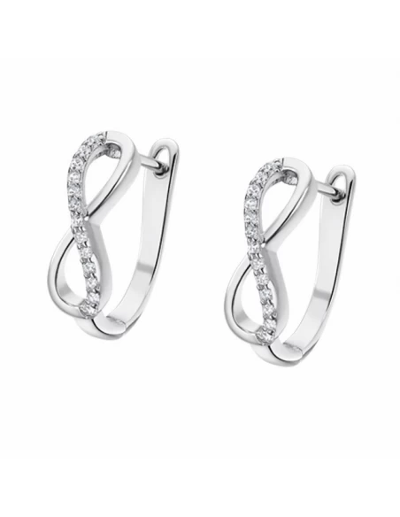 Pendientes con motivo en forma de infinito con 26 circonitas de 1 mm engastadas. Cierre ballestilla.