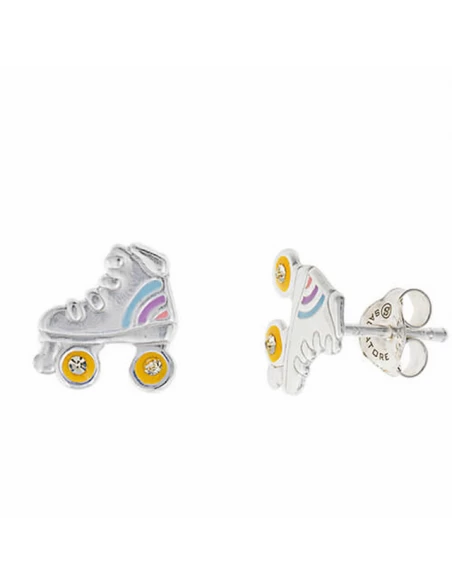 Pendientes en forma de patines con esmalte y cierre de presion.