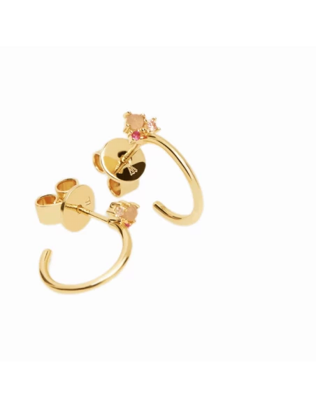 Pendientes Plata P D Paola Baño Oro Aro Con Piedras Color.