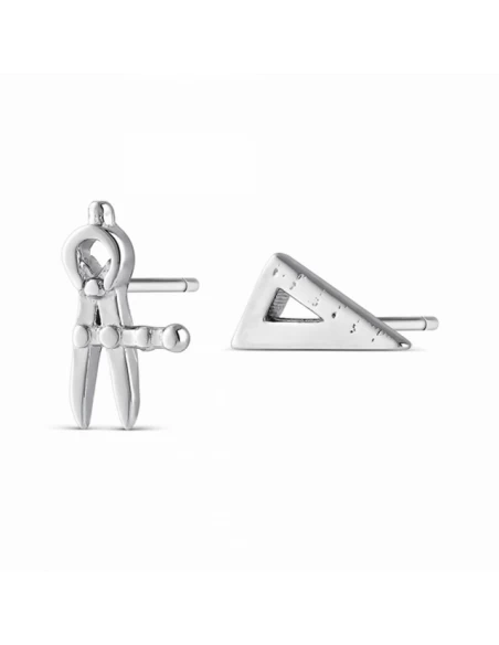 Pendientes uno en forma de compás y otro en forma de cartabón de 10 mm. Cierre a presion.