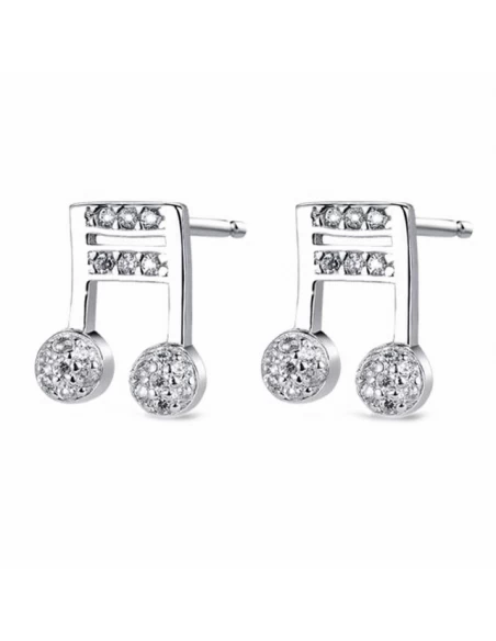 Pendientes Plata Rodiada. Nota Musical Con Circonitas. 10 Mm.