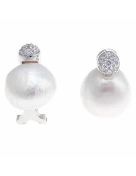 Pendientes tu y yo perla blanca uniforme con roseta de circonitas superior.