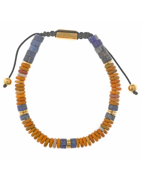 Realizada con Discos de Emperor Azul y Marrón Claro y entrepiezas de acero pulido y con baño de Oro.