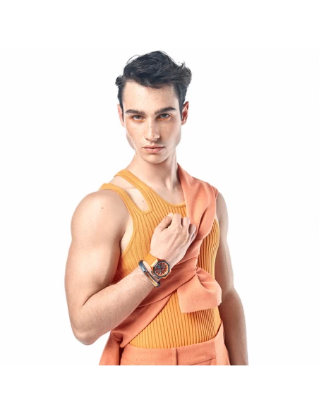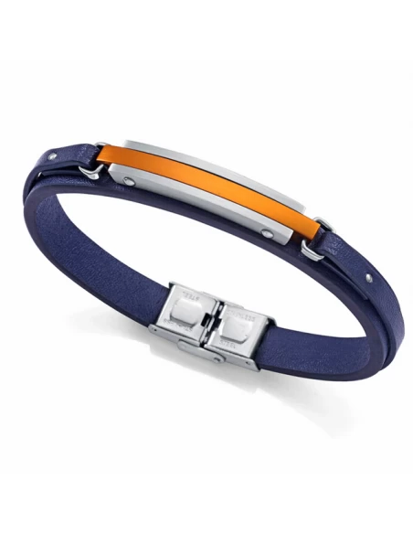 Pulsera Hombre Acero Viceroy Fashion 14146P09019 Piel Azul Y Aluminio Naranja