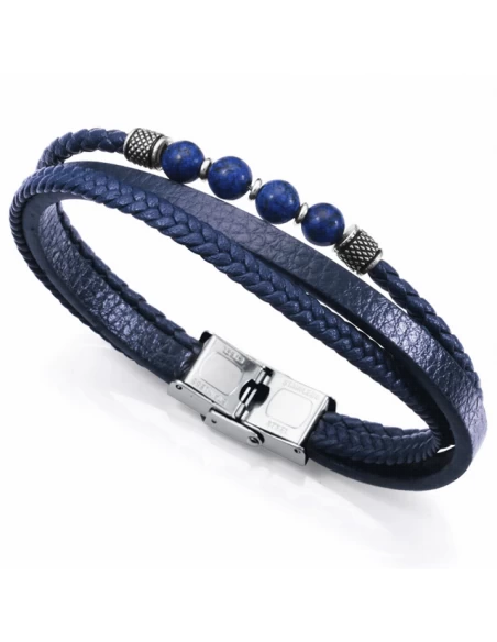 Pulsera de 21 cm. de largo en piel Azul con abalorio de piedra natural en color azul.