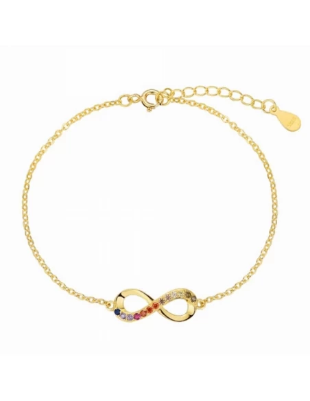 Pulsera de 17 cm. + 3 cm. de alargador e infinito con circonitas colores. Cierre asa de muelle.