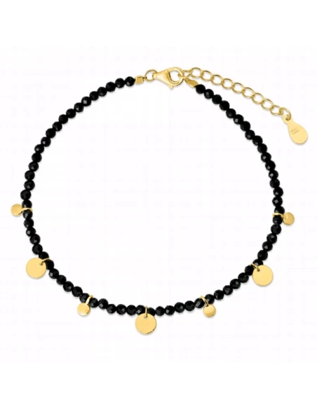 Pulsera Plata Chapada Y Piedras Negras Y Discos Dorados.