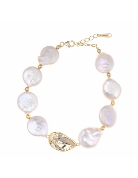 Pulsera lagrima central y perlas barrocas planas de 18 cm. mas 3 cm. de alargador.