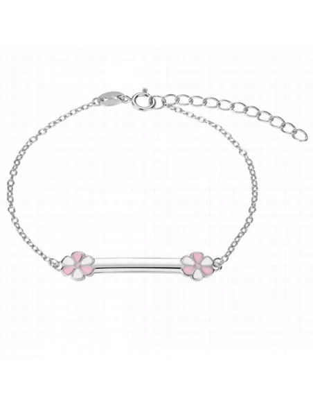 Pulsera Plata. Esclava De 30 Mm Con Dos Flores Esmaltadas.