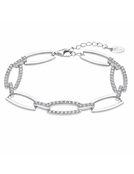 Pulsera Lotus Silver. Eslabones lisos, combinados con eslabones cuajados de circonitas. Cierre de Mosquetón, con alargador. Pulsera muy resistente, de Alta Calidad.