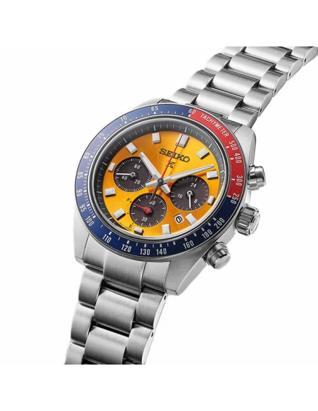 Automático. Calibre V192. Caja Acero inoxidable de dfiámetro 41’40 mm y de 13,00 mm de grosor. Cristal zafiro. Esfera Tornasolada naranja con lumibrite en índices y agujas. Calendarío día del mes. Cierre de mariposa con pulsador. Resistencia al agua 100m.