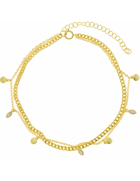 Tobillera de 20 cm + 5 cm de alargador con doble cadena una barbada y otra forsait con chapitas.