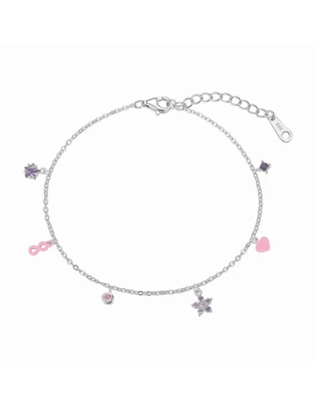 Tobillera de cadena forsait con distintos colgantes de piedras y esmalte de colores.